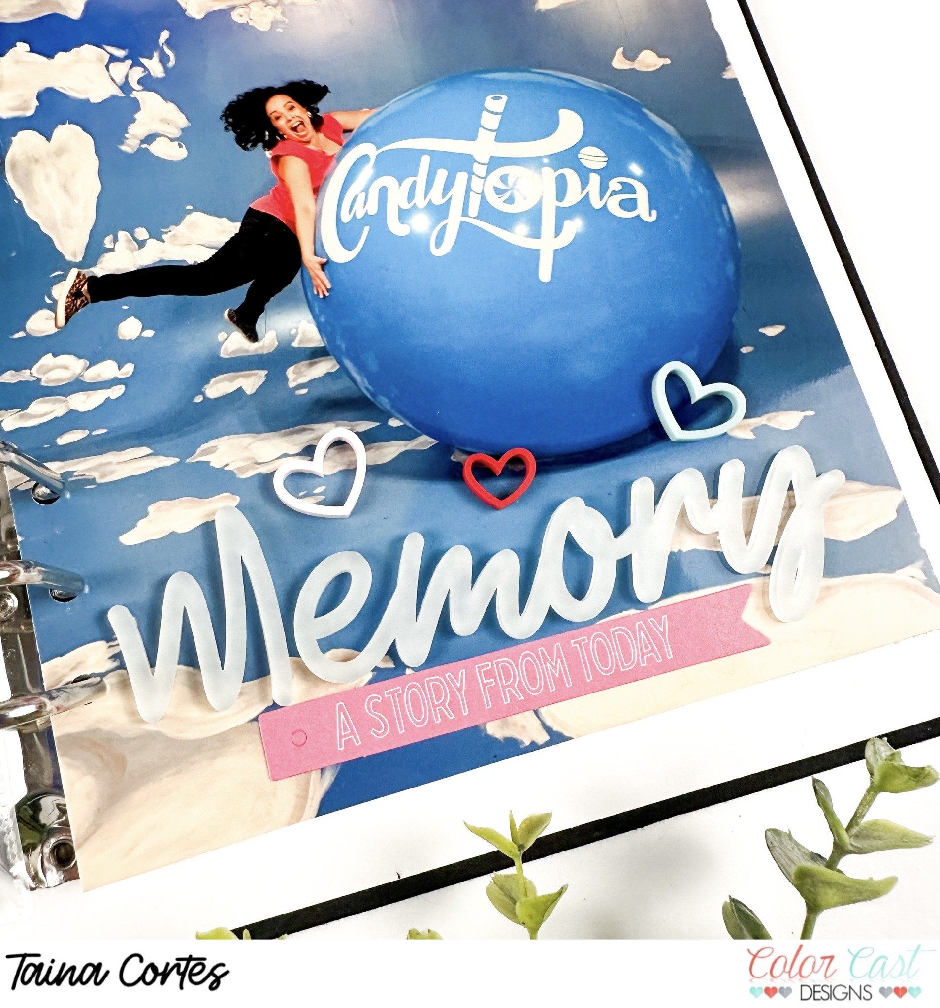 “Bright and colorful are my favorite layouts. I came across a FB memory from 2019 when this awesome photo was taken while we went to Candytopia with little Valentina. I leaped onto these large balls and a split second later, I fell flat to the floor because the ball was pushed my momentum and did not roll. OMG, one of the funniest moments in my life and my sister caught the perfect action photo of it occurring.”